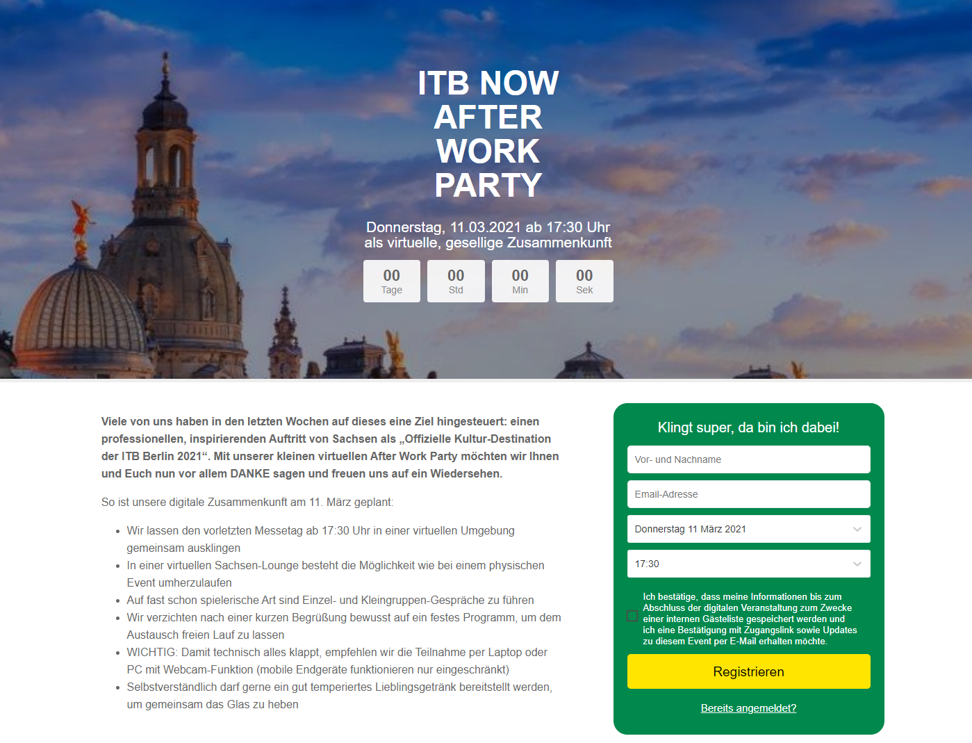 Beispiel Landingpage mit Anmeldung auf Meetingland